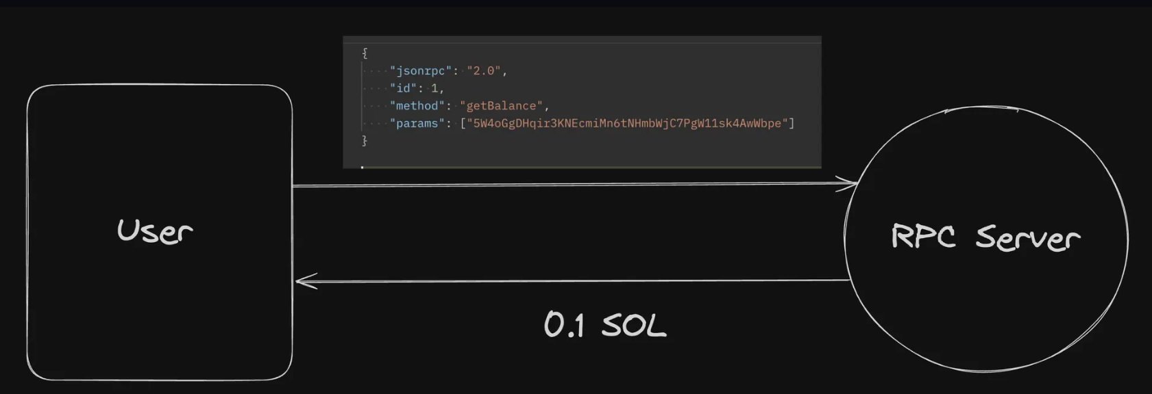 - Frontend sends a JSON-RPC request to an RPC server (either a public provider or your backend proxy).